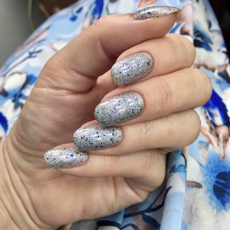 Очень красивый лак! Всполохи синей слюды завораживающе смотрятся в маникюре!