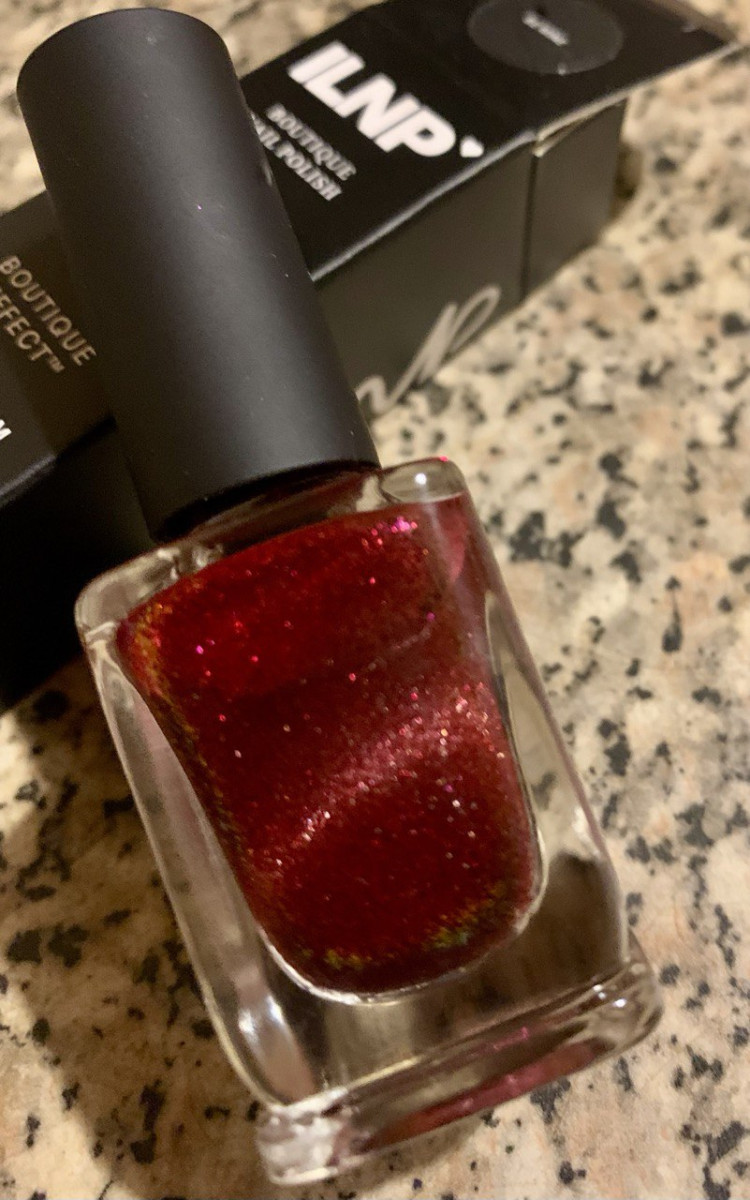 Очень интересный замес, основа - красное желе с большим количеством мелких красных блёсточек, магнитные частицы розовато-серебристые. Двухслойник, послушный, магнитится охотно, но блик не яркий получается. С топом дружит. В зависимости от освещения бывает то тёплым, то холодным красным. Стойкость до снятия (пока не надоест))) Мастхевом не назову, но смотрится очень нарядно, мне понравился.