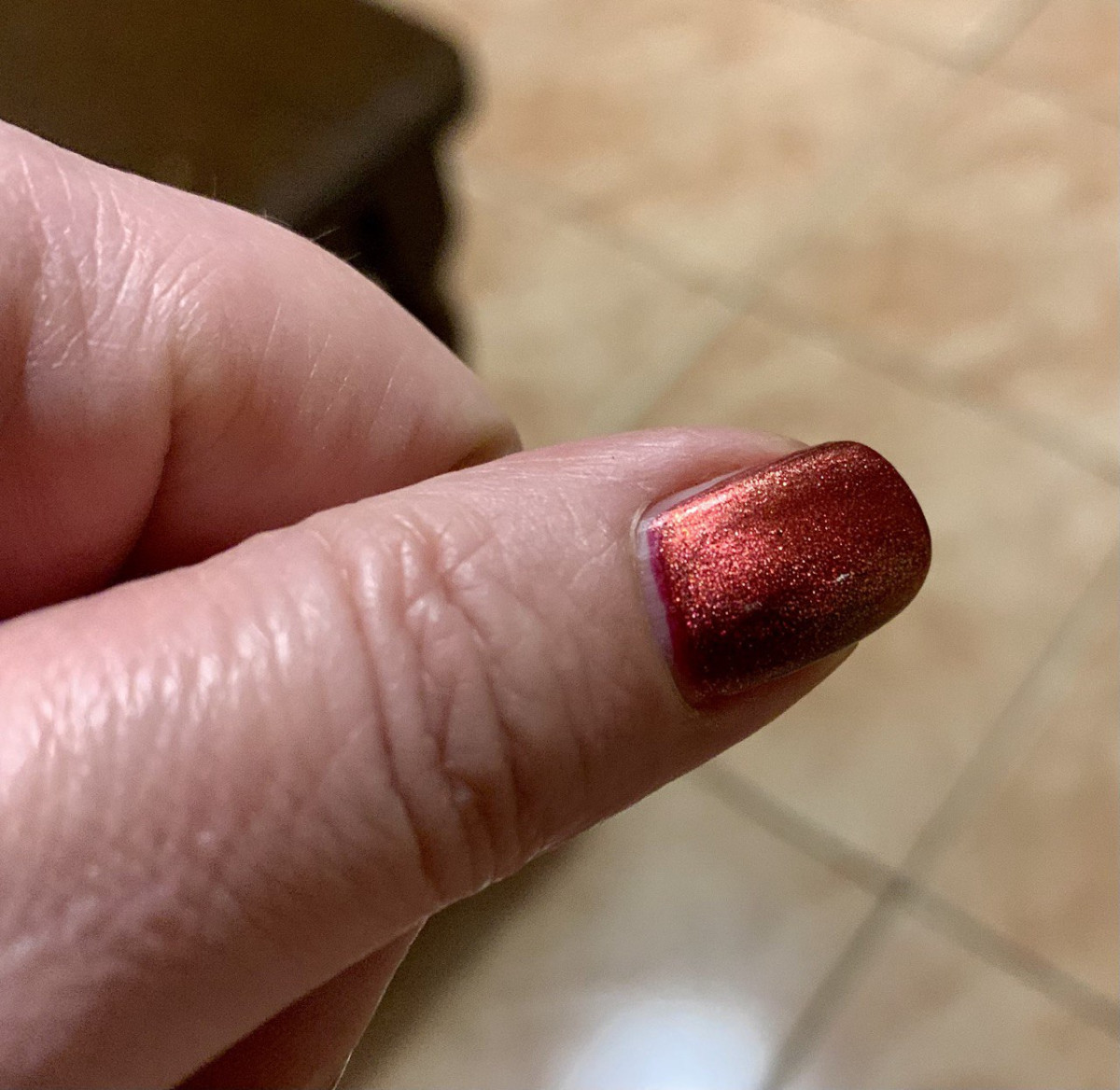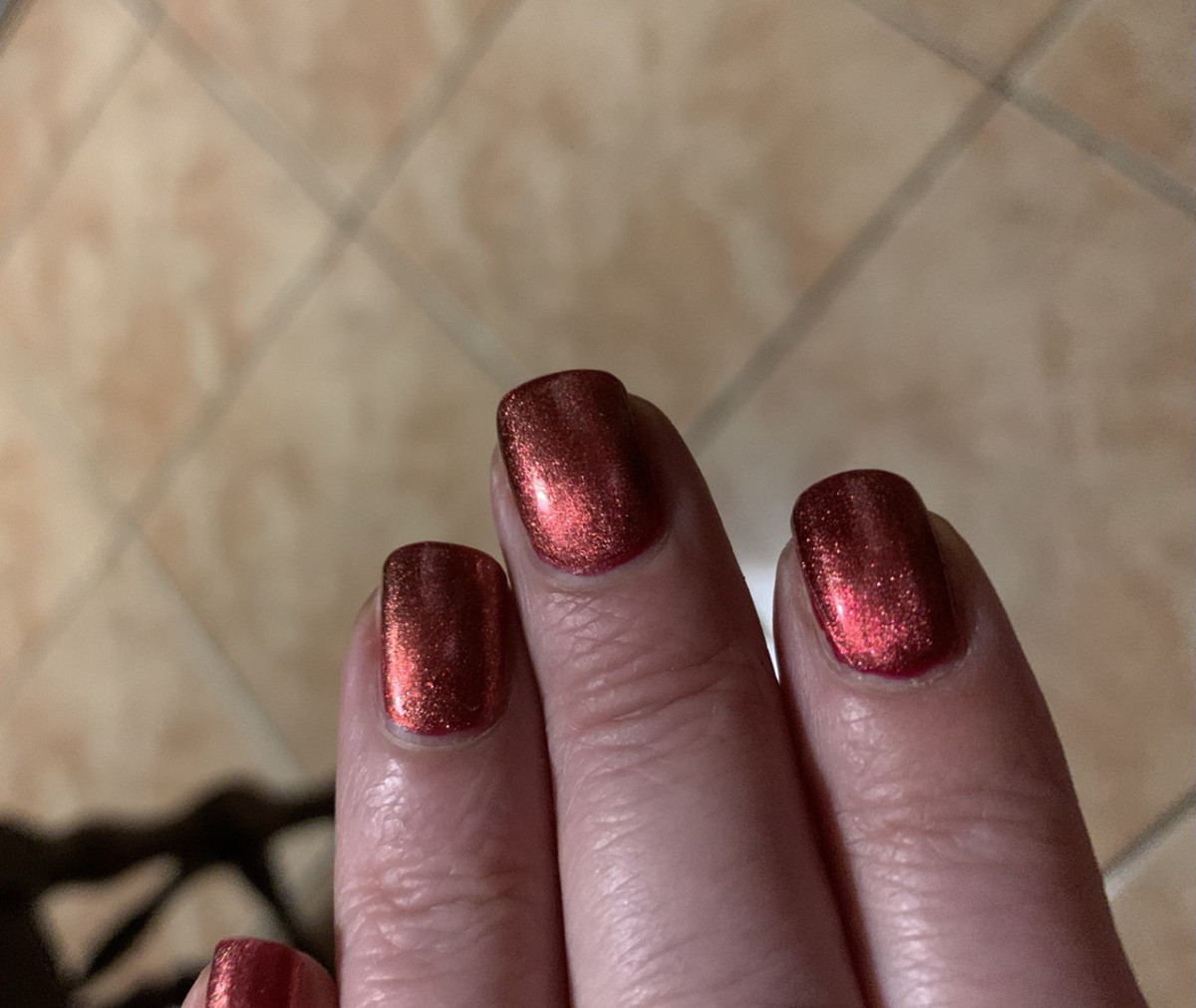 Хотелось тёмно-красную отражайку. Увы, не сложилось. Лаки, которые чаще выглядят коричневыми, чем бордовыми - категорически не моё. Во флаконе красный виден, на ногтях - очень изредка.