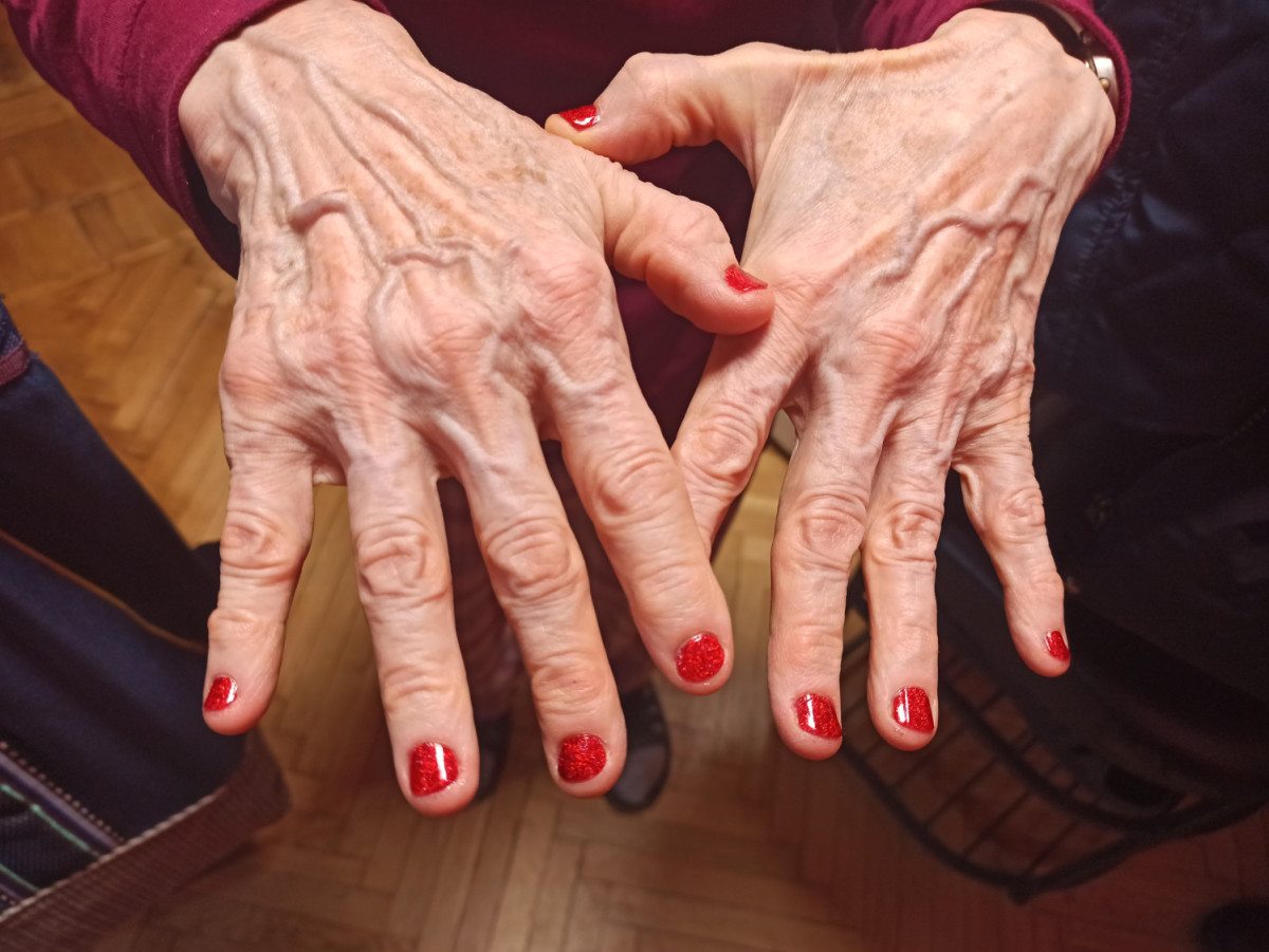 KOROLEVA Ded Moroz прекрасный послушный лак, уложить можно и в один слой, но я всегда наношу два тонких. Моделью выступила бабушка - делала ей маникюр 30го в день рождения. Про голографию многие писали, не буду повторяться, она потрясающая. А вот пишу отзыв потому, что лак меня просто потряс своей стойкостью. Внимание! Сегодня 8-ое января, бабушка стопудово моет посуду без перчаток - и ни одного скола. Немного затёрты кончики. Потрясающий лак. Ну, и вот фото любимых ручек (в день покраса, конечно же))
