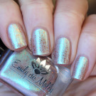 В бутыльке явный зеленочного оттенка шиммер, что отвращало меня от пробы лака довольно долго. Кажется что его в лаке много. (Перламутр с зеленкой, фу-фу) Перед тем как избавиться от лака, всё же решилась накрасить. И, о чудо! Теперь я его нежно люблю и никому не отдам!