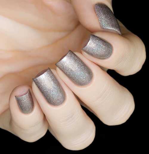 Лак очень комплиментарен моим рукам! Этакий серо-золотистый теплый нюд со сдержанной голографией. Теплый и очень уютный. В нанесении и удалении беспроблемен. На мне 3 дня держится без сколов, что меня вполне устраивает. Короче, любовь!