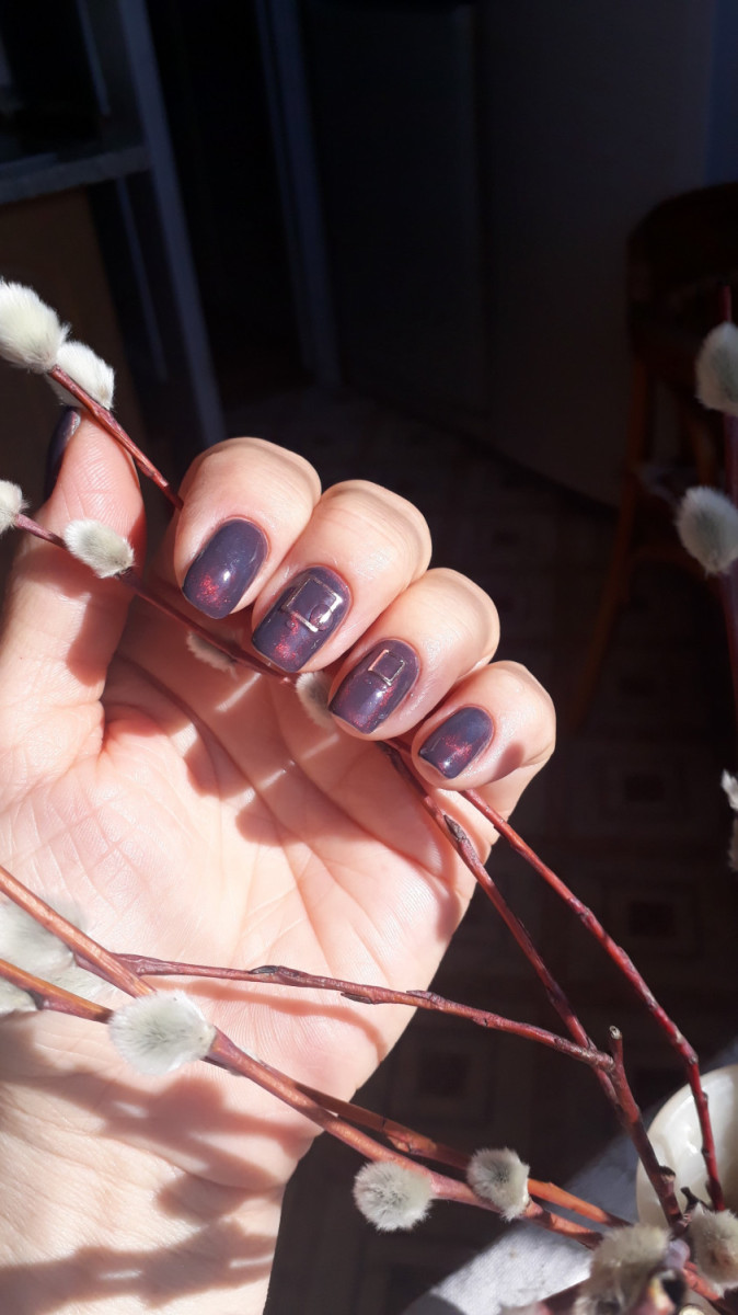магнитится хуже, чем все знакомые мне магнитные, но его это ничуть не портит. Немного напомнил шанелевский парадоксаль, но с более ярким шиммером. Отлично выглядит без магнитного блика