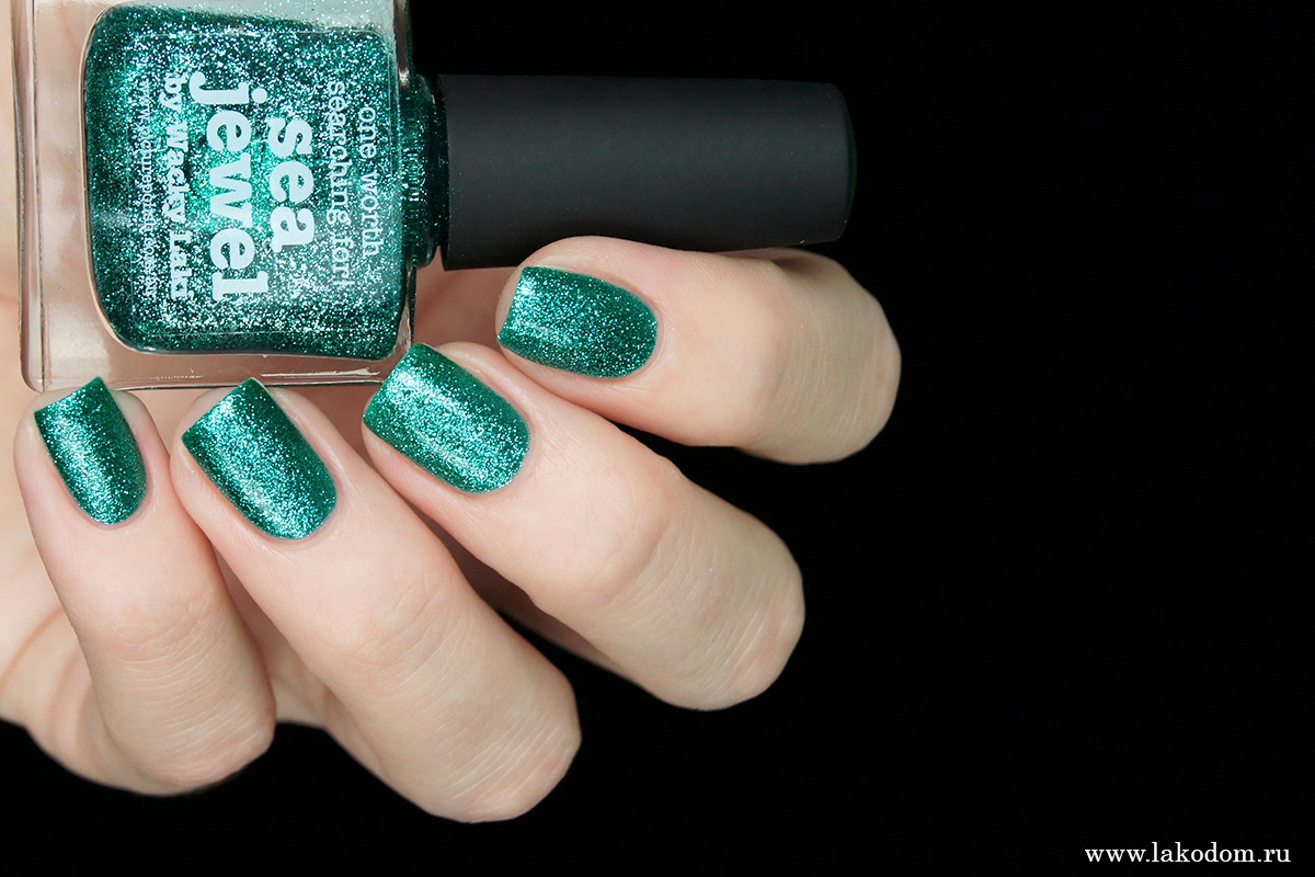 Очень крутой лак. Жаль что на него совсем нет отзывов. Нанесение беспроблемное, хватает 2 слоев, финиш не шершавый, но и не гладкий, одного слоя топа вполне хватает. А я ходила и вовсе без него. Удаляется, не смотря на обилие блесток, без проблем. Нарядный и морской. Точно что морское сокровище