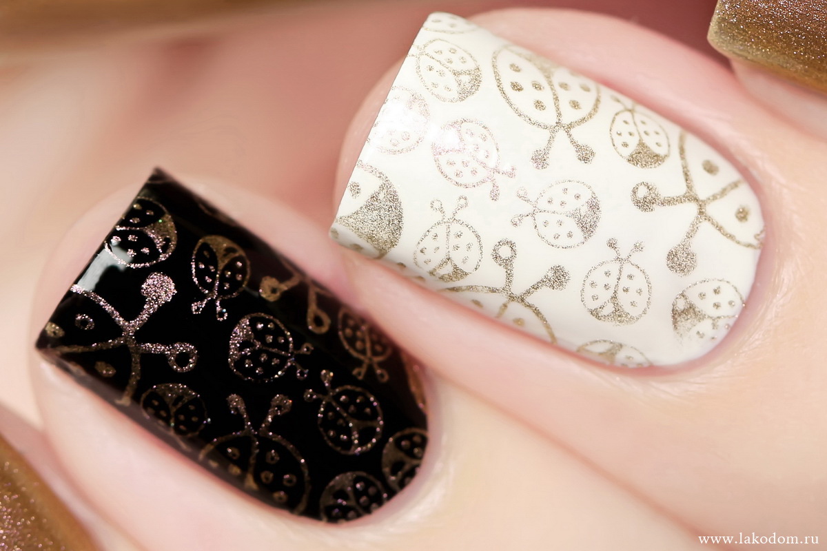 Долго думала стоит ли заказывать "Золотая леди" этой фирмы, так как смущала цена и цвет, который обычно для стемпинга бывает не выигрышным. А тут была очень рада тому что и цвет и консистенция крутое. Теперь все рисунки от плиток отлично переносятся и даже ВИДНы самые мелкие детали. Здесь мне кажется очень правильное золото, которое не теряется в цвете лака за счет бронзового отлива.